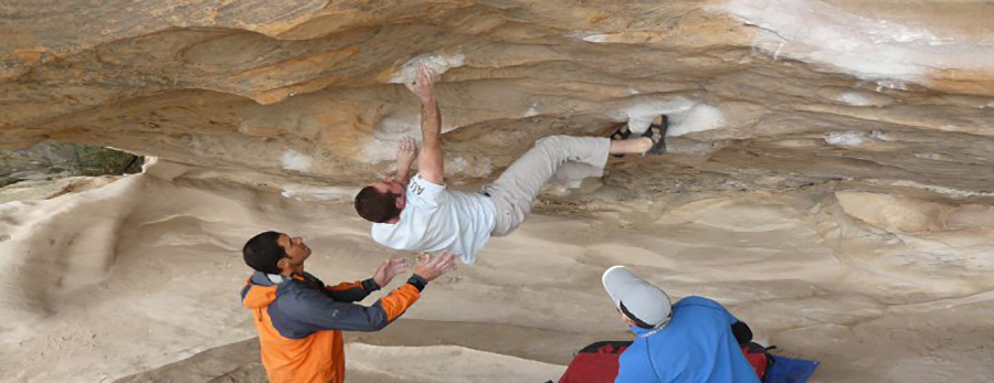 In this post I will present some safety tips when bouldering. Safety when bouldering includes using common sense and knowing your limitations. It also includes making sure you have the adequate equipment to minimise something going wrong. It also pays to have a good spotter, as demonstrated in this photo.